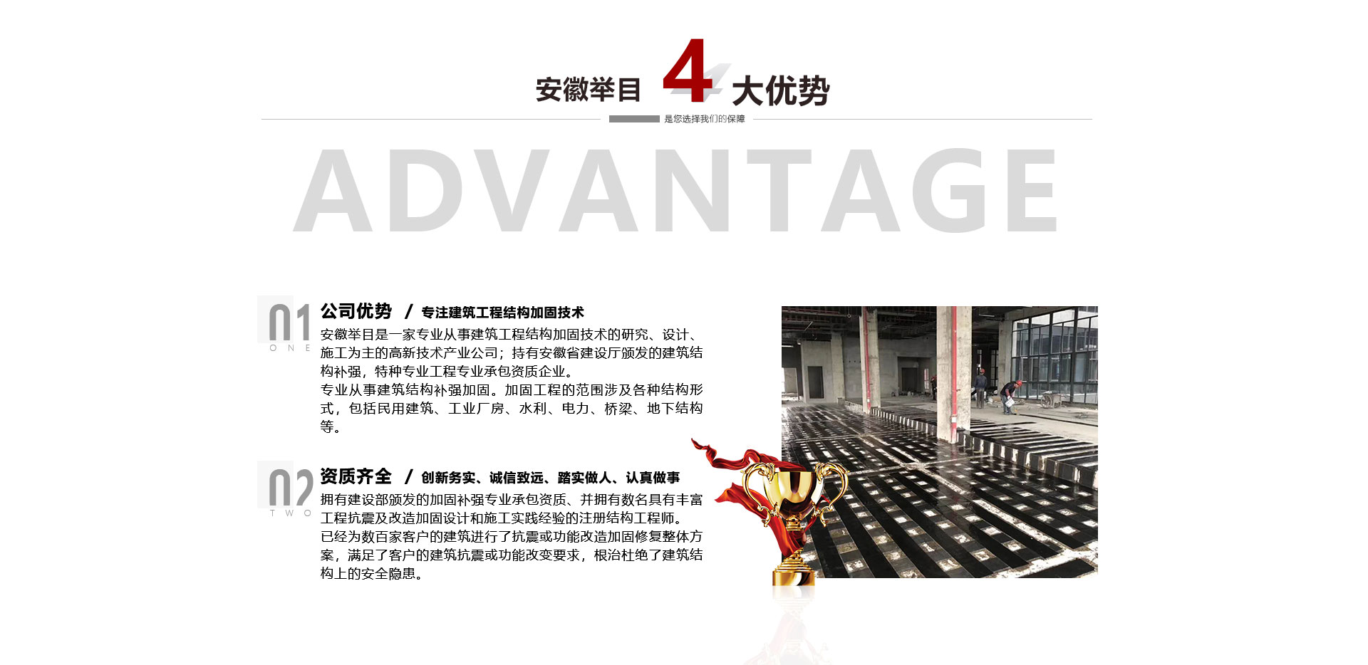 安徽舉目工程加固有限公司是一家專業(yè)從事建筑工程結構加固技術的研究、設計、施工為主的高新技術產業(yè)公司,成立于2012年。持有安徽省建設廳頒發(fā)的建筑結構補強,特種專業(yè)工程專業(yè)承包資質企業(yè)。專業(yè)從事建筑結構補強加固。加固工程的范圍涉及各種結構形式,包括民用建筑、工業(yè)廠房、水利、電力、橋梁、地下結構等。公司依托高校土木建筑學院、省建筑科學研究機構專業(yè)從事建筑結構加固、檢測、鑒定、設計、施工、公司擁有建設部頒發(fā)...